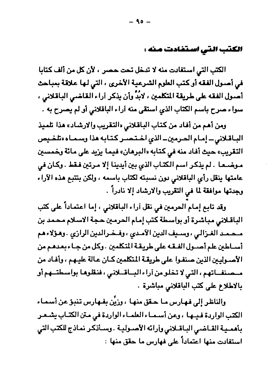والناظر إلى فهارس ما حقق منها، وزين بفهارس تنبؤ عن أسماء الكتب الواردة فيها، وعن أسماء العلماء الواردة في متن الكتاب يشعر بأهمية القاضي الباقلاني وآرائه الأصولية. وسأذكر نماذج للكتب التي استفادت منها اعتمادًا على فهارس ما حقق منها: