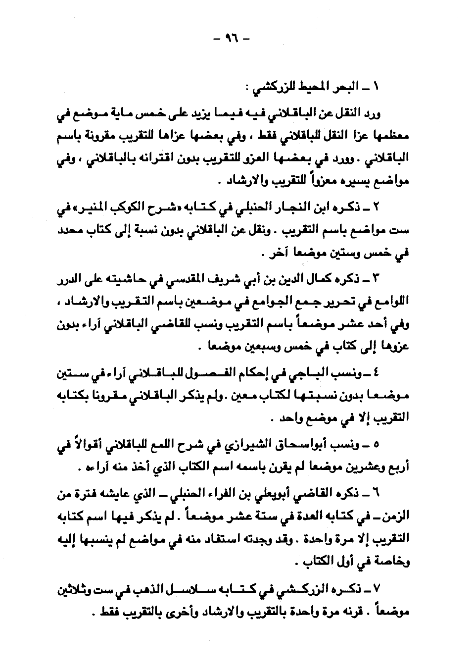 ٧ - ذكره الزركشي في كتابه سلاسل الذهب في ست وثلاثين موضعًا. قرنه مرة واحدة بالتقريب والإرشاد وأخرى بالتقريب فقط.