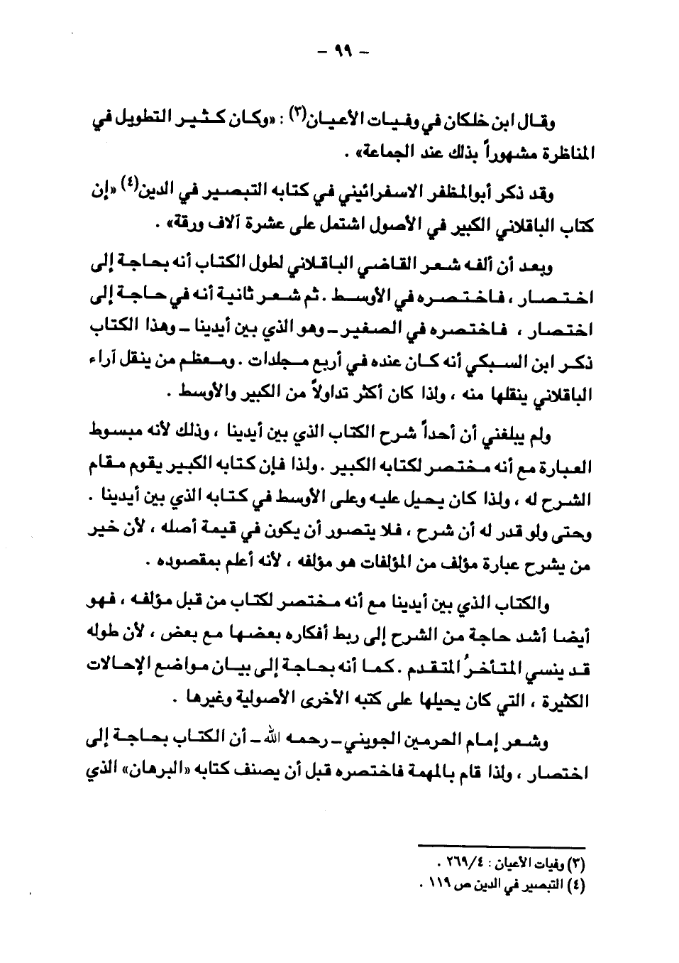 وقد ذكر أبو المظفر الاسفرائيني في كتابه التبصير في الدين "إن كتاب الباقلاني الكبير في الأصول اشتمل على عشرة آلاف ورقة".