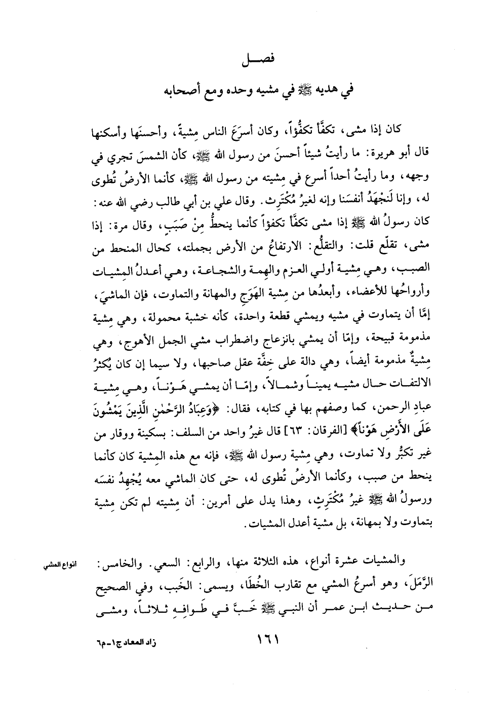 فِي هَدْيِهِ صَلَّى اللَّهُ عَلَيْهِ وَسَلَّمَ فِي مَشْيِهِ وَحْدَهُ وَمَعَ أَصْحَابِهِ