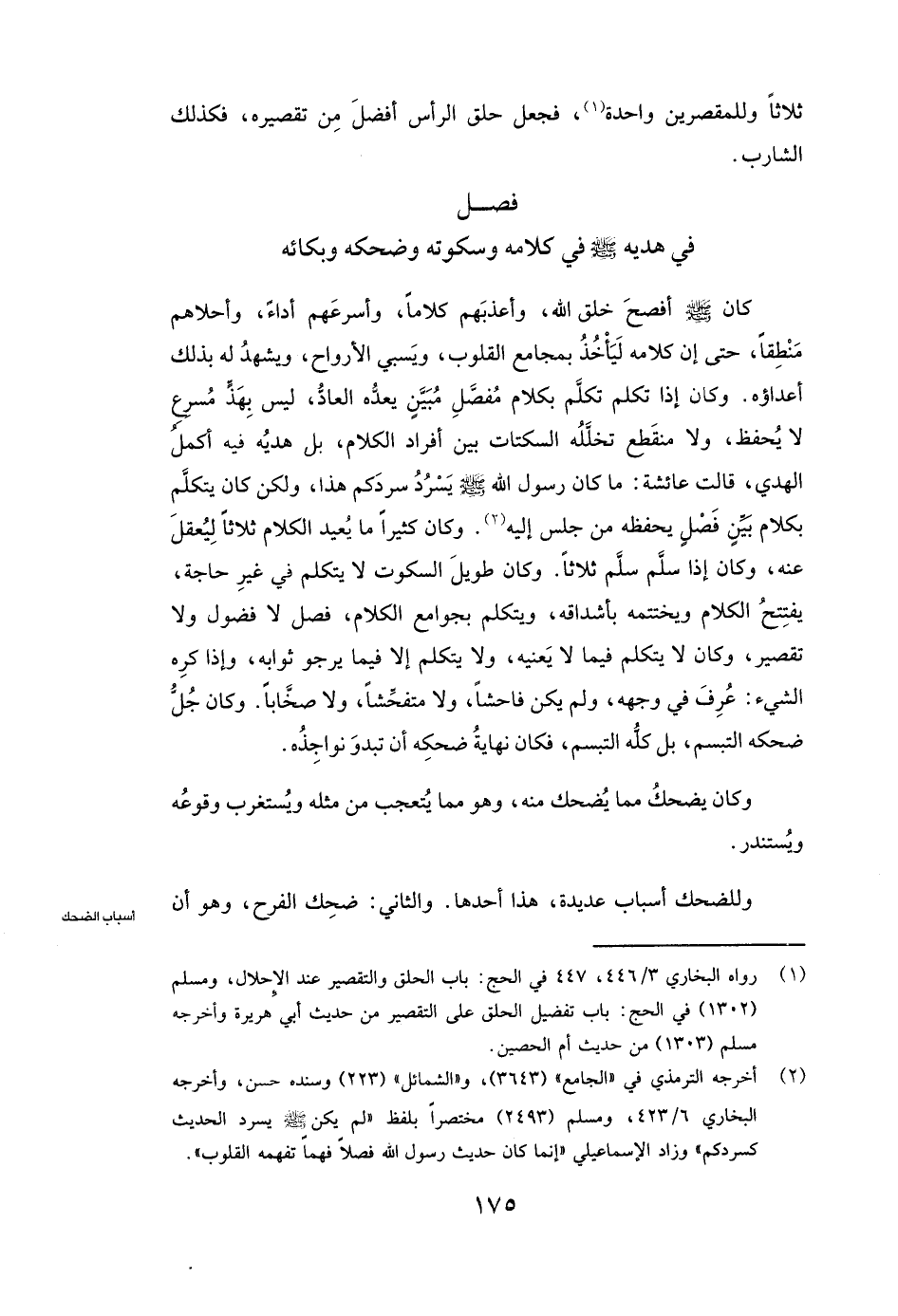 فِي هَدْيِهِ صَلَّى اللَّهُ عَلَيْهِ وَسَلَّمَ فِي كَلَامِهِ وَسُكُوتِهِ وَضَحِكِهِ وَبُكَائِهِ