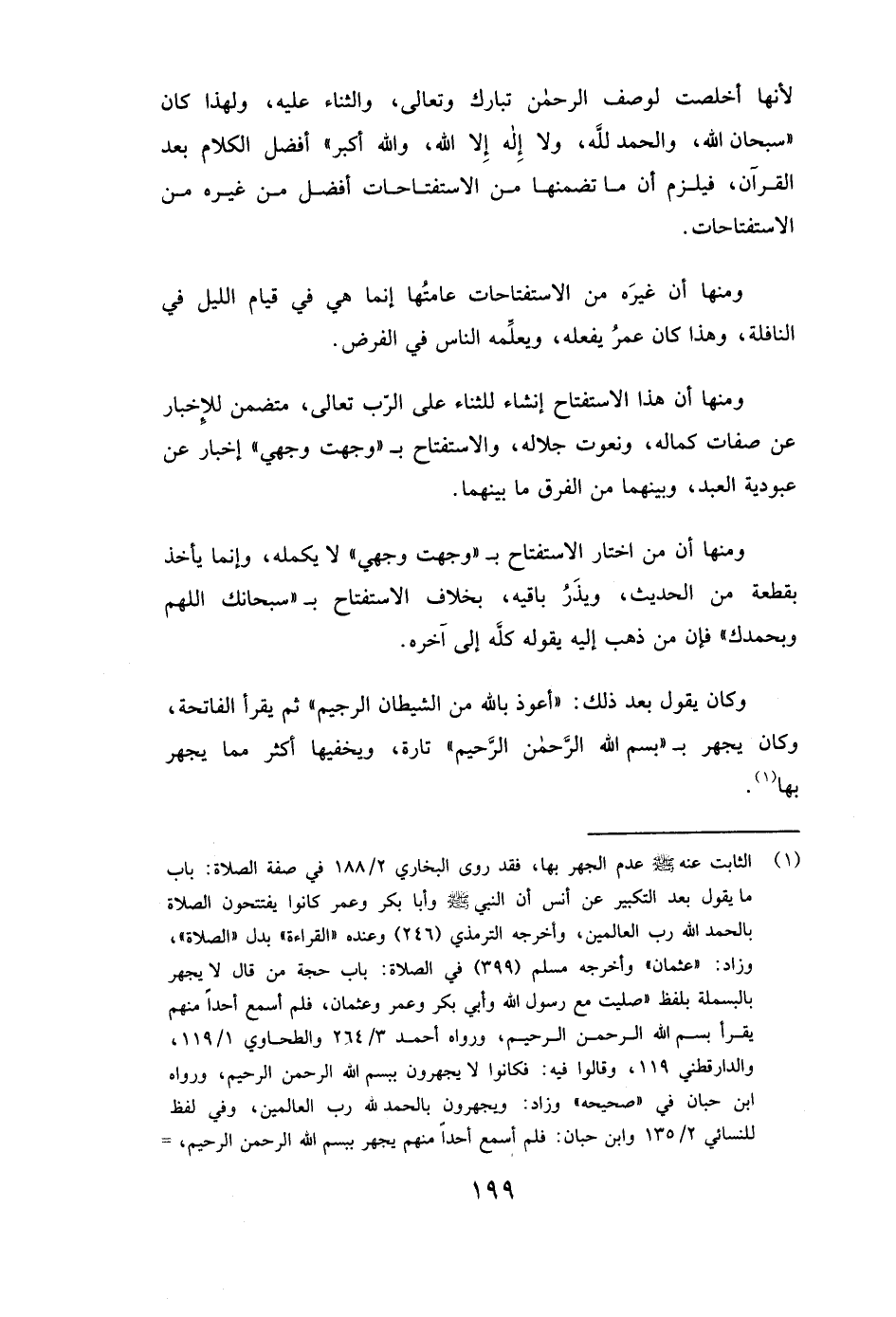 لِأَنَّهَا أُخْلِصَتْ لِوَصْفِ الرَّحْمَنِ تَبَارَكَ وَتَعَالَى وَالثَّنَاءِ عَلَيْهِ، وَلِهَذَا كَانَ " سُبْحَانَ اللَّهِ وَالْحَمْدُ لِلَّهِ وَلَا إِلَهَ إِلَّا اللَّهُ وَاللَّهُ أَكْبَرُ " أَفْضَلَ الْكَلَامِ بَعْدَ الْقُرْآنِ، فَيَلْزَمُ أَنَّ مَا تَضَمَّنَهَا مِنَ الِاسْتِفْتَاحَاتِ أَفْضَلُ مِنْ غَيْرِهِ مِنَ الِاسْتِفْتَاحَاتِ.