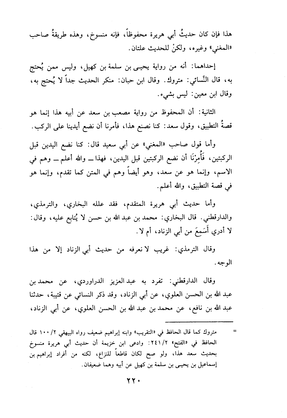 وَأَمَّا قَوْلُ صَاحِبِ " الْمُغْنِي " عَنْ أبي سعيد قَالَ: ( «كُنَّا نَضَعُ الْيَدَيْنِ قَبْلَ الرُّكْبَتَيْنِ فَأُمِرْنَا أَنْ نَضَعَ الرُّكْبَتَيْنِ قَبْلَ الْيَدَيْنِ» ) فَهَذَا - وَاللَّهُ أَعْلَمُ - وَهْمٌ فِي الِاسْمِ، وَإِنَّمَا هُوَ عَنْ سعد، وَهُوَ أَيْضًا وَهْمٌ فِي الْمَتْنِ كَمَا تَقَدَّمَ، وَإِنَّمَا هُوَ فِي قِصَّةِ التَّطْبِيقِ، وَاللَّهُ أَعْلَمُ.