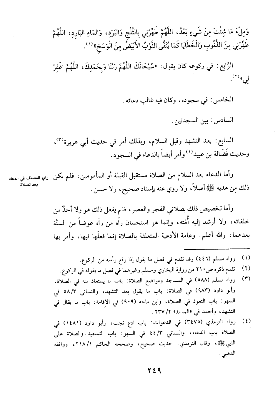 وَعَامَّةُ الْأَدْعِيَةِ الْمُتَعَلِّقَةِ بِالصَّلَاةِ إِنَّمَا فَعَلَهَا فِيهَا وَأَمَرَ بِهَا
