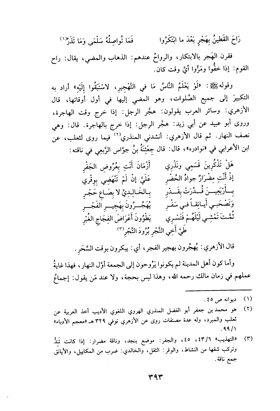 قَالَ الأزهري: يُهَجِّرُونَ بِهَجِيرِ الْفَجْرِ أَيْ يُبَكِّرُونَ بِوَقْتِ السَّحَرِ.