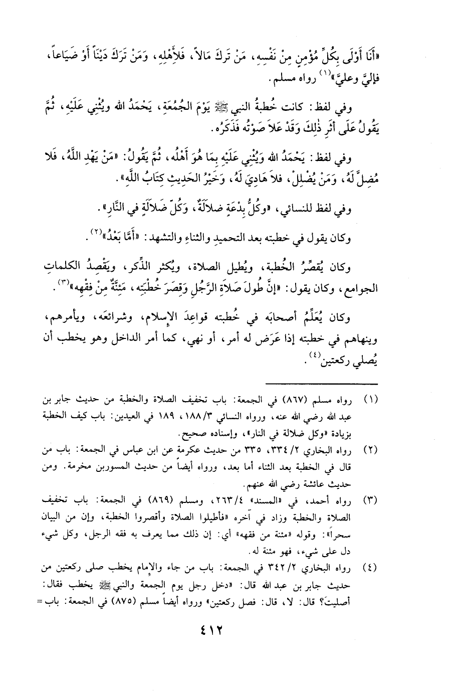( «أَنَا أَوْلَى بِكُلِّ مُؤْمِنٍ مِنْ نَفْسِهِ، مَنْ تَرَكَ مَالًا فَلِأَهْلِهِ، وَمَنْ تَرَكَ دَيْنًا أَوْ ضَيَاعًا فَإِلَيَّ وَعَلَيَّ» ) رَوَاهُ مسلم.