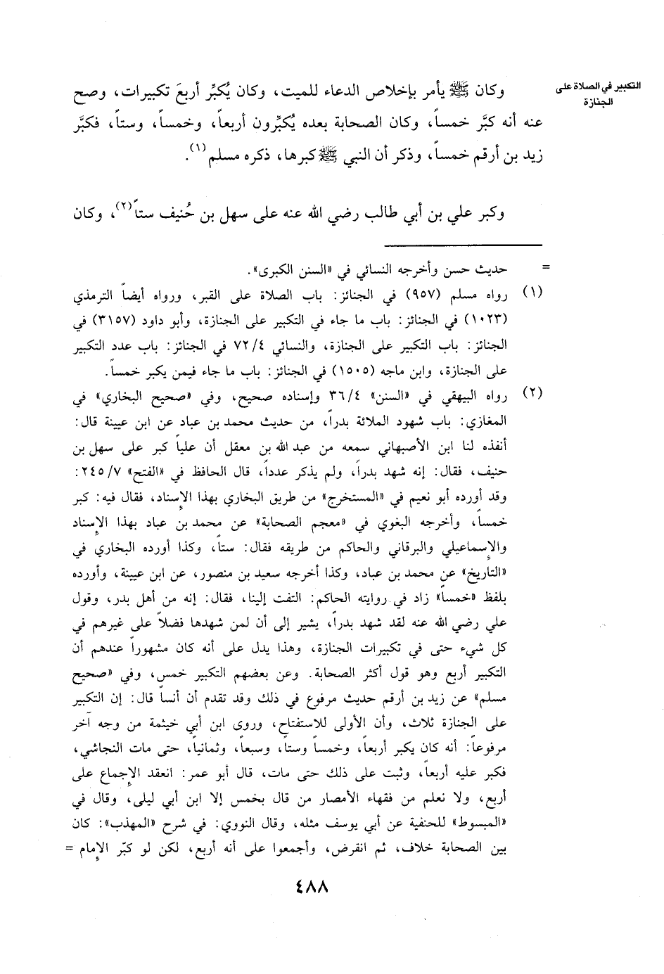 (وَكَبَّرَ عَلِيُّ بْنُ أَبِي طَالِبٍ - رَضِيَ اللَّهُ عَنْهُ - عَلَى سَهْلِ بْنِ حُنَيْفٍ سِتًّا، وَكَانَ