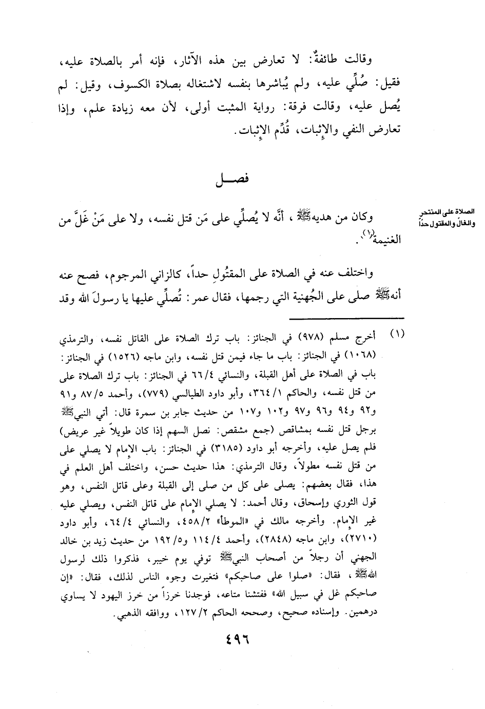 [فَصْلٌ في الصَّلَاةُ عَلَى الْمُنْتَحِرِ وَالْغَالِّ وَالْمَقْتُولِ حَدًّا]