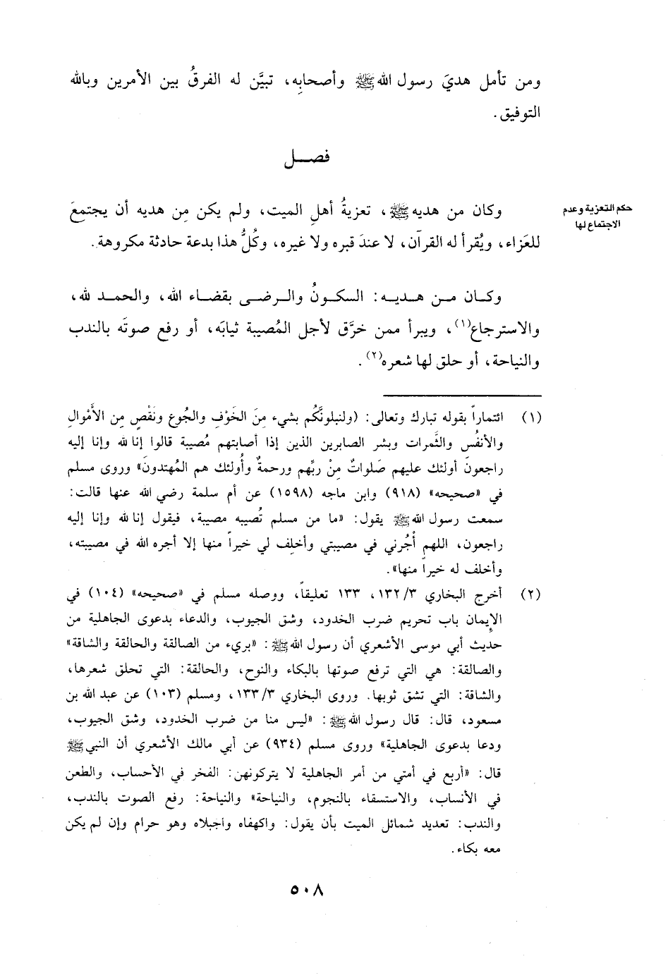 وَمَنْ تَأَمَّلَ هَدْيَ رَسُولِ اللَّهِ - صَلَّى اللَّهُ عَلَيْهِ وَسَلَّمَ - وَأَصْحَابِهِ، تَبَيَّنَ لَهُ الْفَرْقُ بَيْنَ الْأَمْرَيْنِ، وَبِاللَّهِ التَّوْفِيقُ.