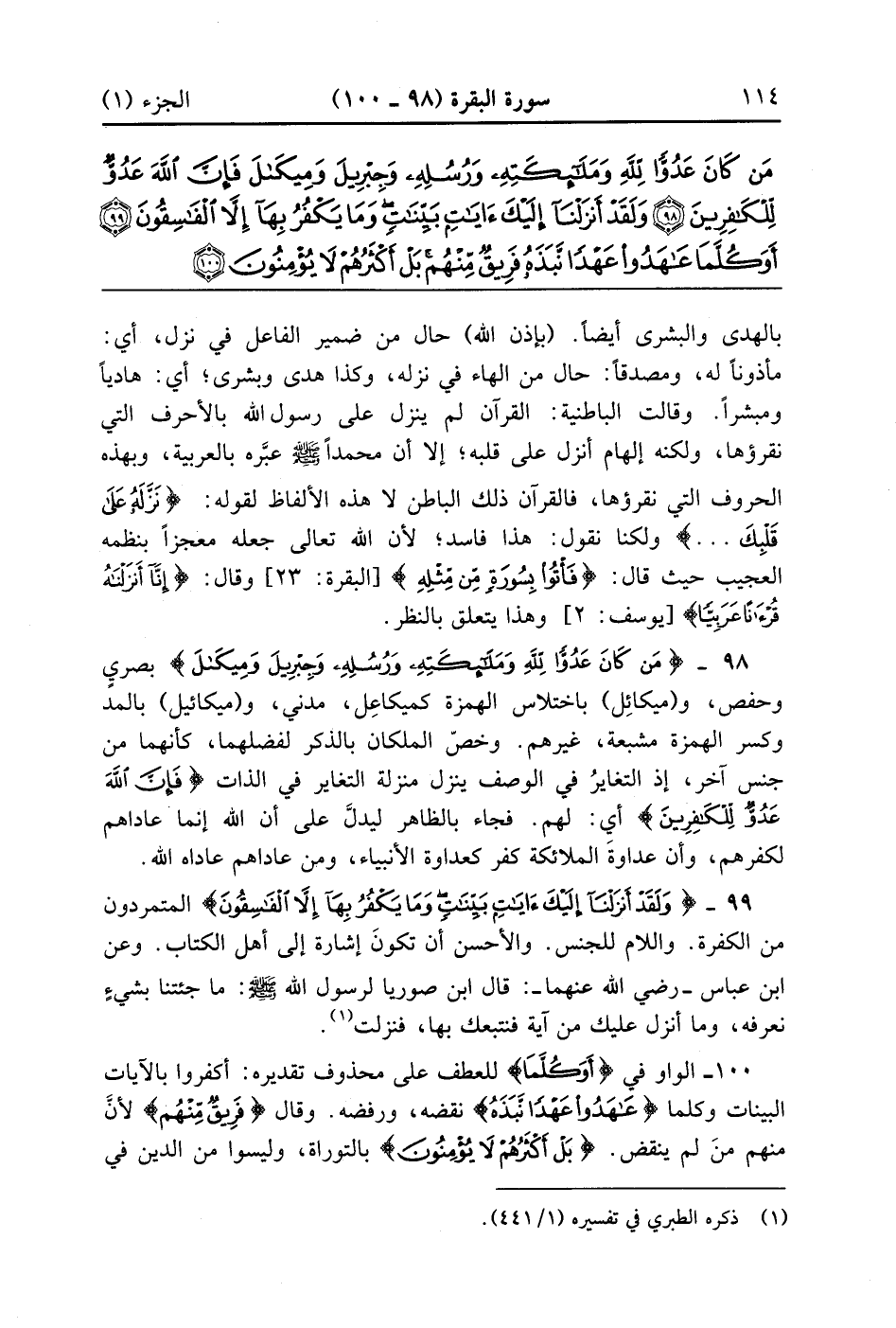 مَنْ كَانَ عَدُوًّا لِلَّهِ وَمَلَائِكَتِهِ وَرُسُلِهِ وَجِبْرِيلَ وَمِيكَالَ فَإِنَّ اللَّهَ عَدُوٌّ لِلْكَافِرِينَ (98)