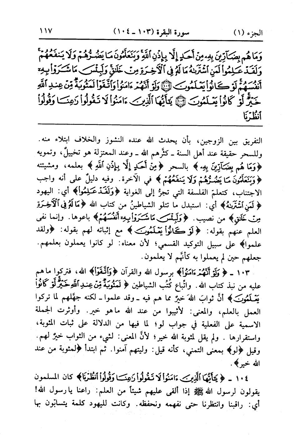 يَا أَيُّهَا الَّذِينَ آمَنُوا لَا تَقُولُوا رَاعِنَا وَقُولُوا انْظُرْنَا وَاسْمَعُوا وَلِلْكَافِرِينَ عَذَابٌ أَلِيمٌ (104)
