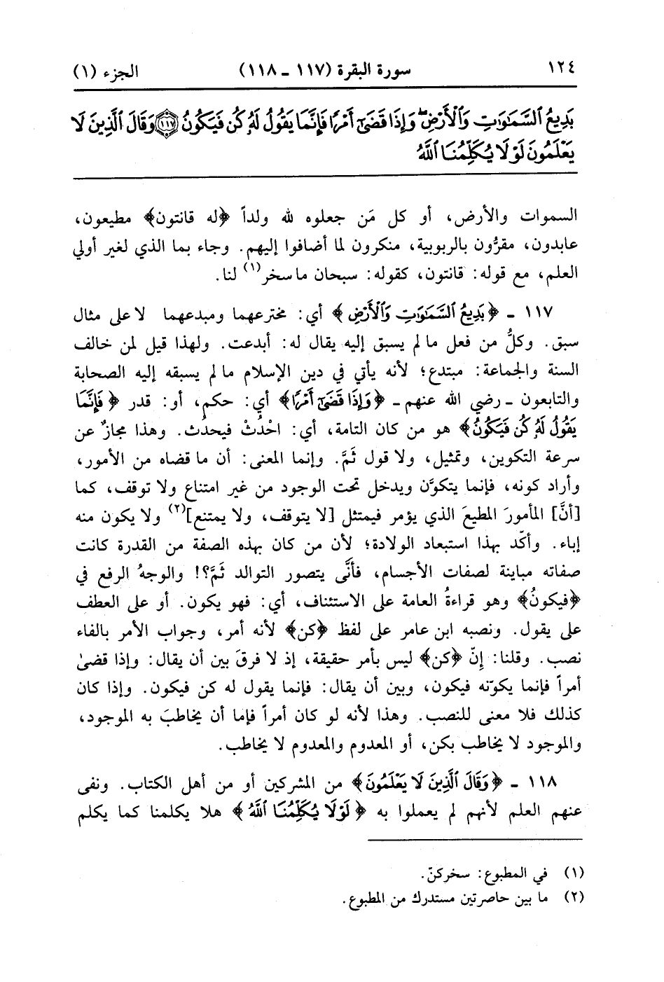 بَدِيعُ السَّمَاوَاتِ وَالْأَرْضِ وَإِذَا قَضَى أَمْرًا فَإِنَّمَا يَقُولُ لَهُ كُنْ فَيَكُونُ (117)
