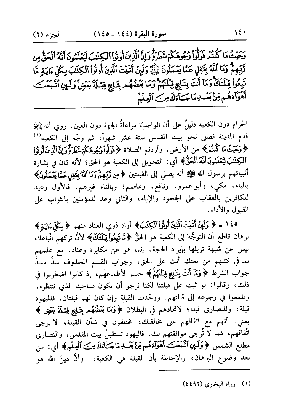 وَلَئِنْ أَتَيْتَ الَّذِينَ أُوتُوا الْكِتَابَ بِكُلِّ آيَةٍ مَا تَبِعُوا قِبْلَتَكَ وَمَا أَنْتَ بِتَابِعٍ قِبْلَتَهُمْ وَمَا بَعْضُهُمْ بِتَابِعٍ قِبْلَةَ بَعْضٍ وَلَئِنِ اتَّبَعْتَ أَهْوَاءَهُمْ مِنْ بَعْدِ مَا جَاءَكَ مِنَ الْعِلْمِ إِنَّكَ إِذًا لَمِنَ الظَّالِمِينَ (145)