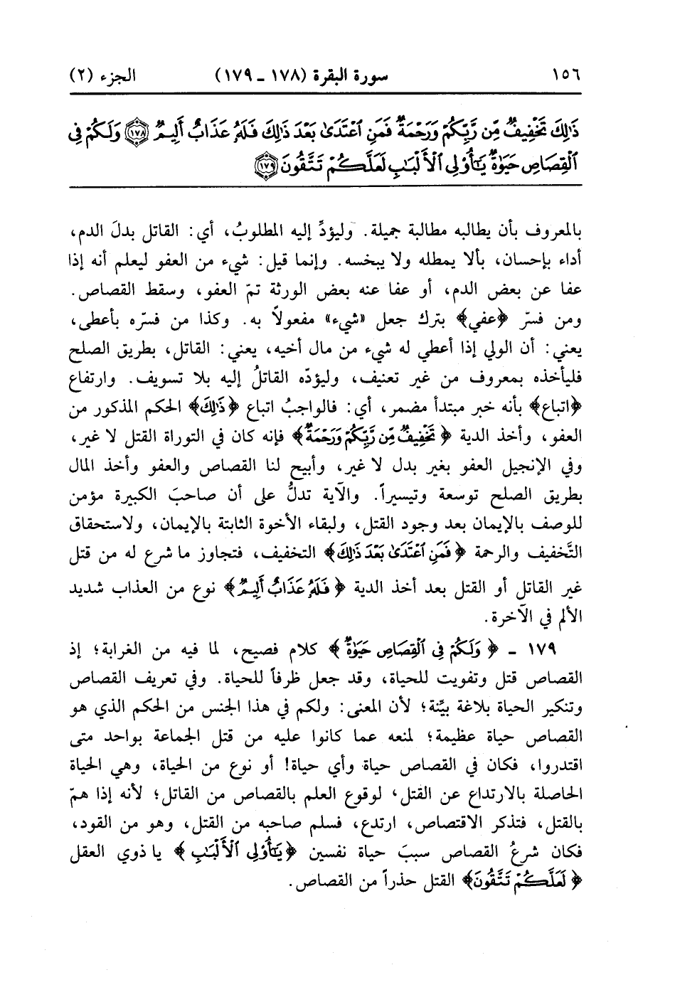 وَلَكُمْ فِي الْقِصَاصِ حَيَاةٌ يَا أُولِي الْأَلْبَابِ لَعَلَّكُمْ تَتَّقُونَ (179)