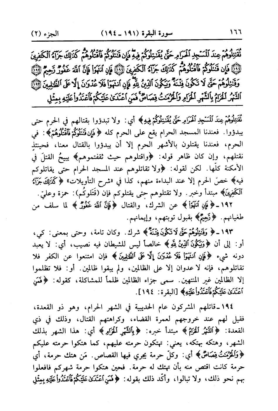 الشَّهْرُ الْحَرَامُ بِالشَّهْرِ الْحَرَامِ وَالْحُرُمَاتُ قِصَاصٌ فَمَنِ اعْتَدَى عَلَيْكُمْ فَاعْتَدُوا عَلَيْهِ بِمِثْلِ مَا اعْتَدَى عَلَيْكُمْ وَاتَّقُوا اللَّهَ وَاعْلَمُوا أَنَّ اللَّهَ مَعَ الْمُتَّقِينَ (194)