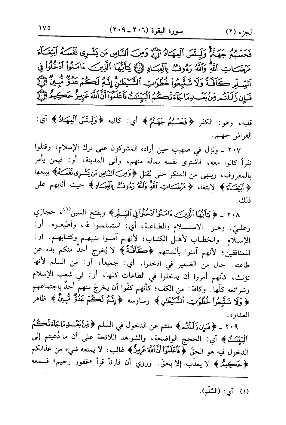 يَا أَيُّهَا الَّذِينَ آمَنُوا ادْخُلُوا فِي السِّلْمِ كَافَّةً وَلَا تَتَّبِعُوا خُطُوَاتِ الشَّيْطَانِ إِنَّهُ لَكُمْ عَدُوٌّ مُبِينٌ (208)