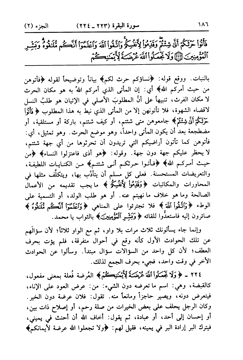وَلَا تَجْعَلُوا اللَّهَ عُرْضَةً لِأَيْمَانِكُمْ أَنْ تَبَرُّوا وَتَتَّقُوا وَتُصْلِحُوا بَيْنَ النَّاسِ وَاللَّهُ سَمِيعٌ عَلِيمٌ (224)