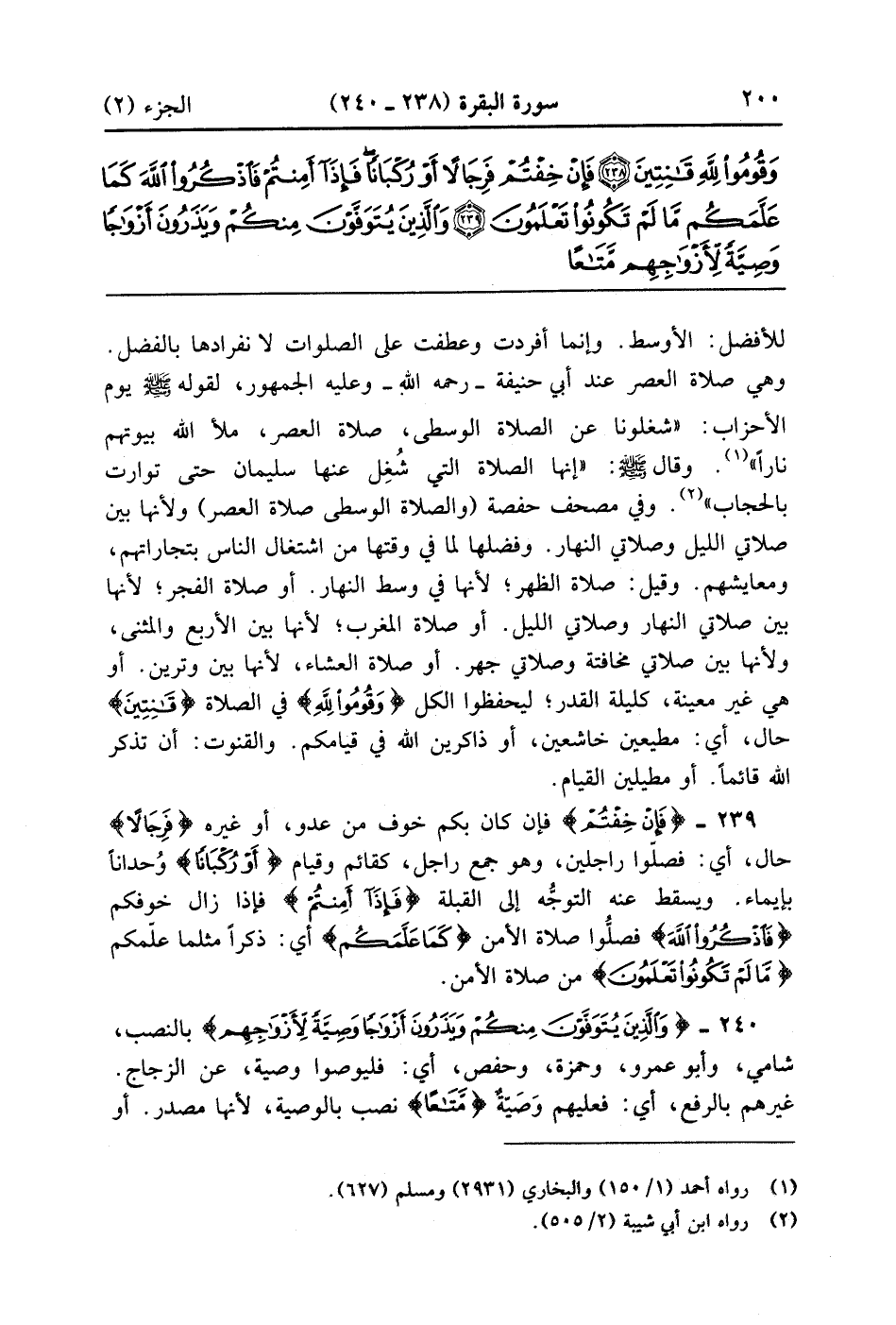 فَإِنْ خِفْتُمْ فَرِجَالًا أَوْ رُكْبَانًا فَإِذَا أَمِنْتُمْ فَاذْكُرُوا اللَّهَ كَمَا عَلَّمَكُمْ مَا لَمْ تَكُونُوا تَعْلَمُونَ (239)