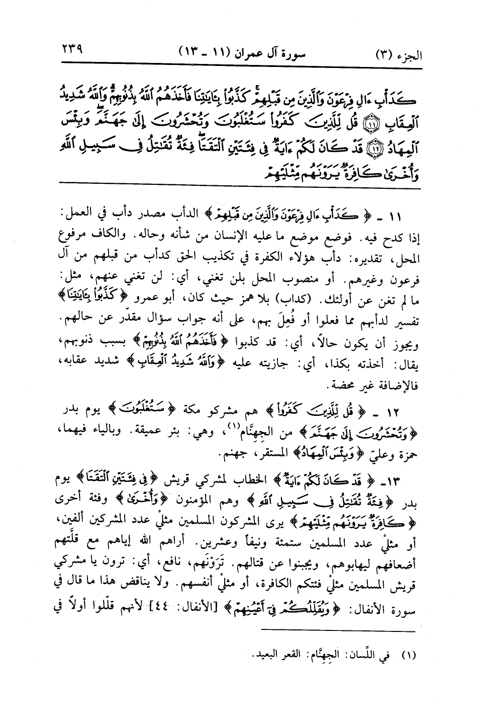 كَدَأْبِ آلِ فِرْعَوْنَ وَالَّذِينَ مِنْ قَبْلِهِمْ كَذَّبُوا بِآيَاتِنَا فَأَخَذَهُمُ اللَّهُ بِذُنُوبِهِمْ وَاللَّهُ شَدِيدُ الْعِقَابِ (11)
