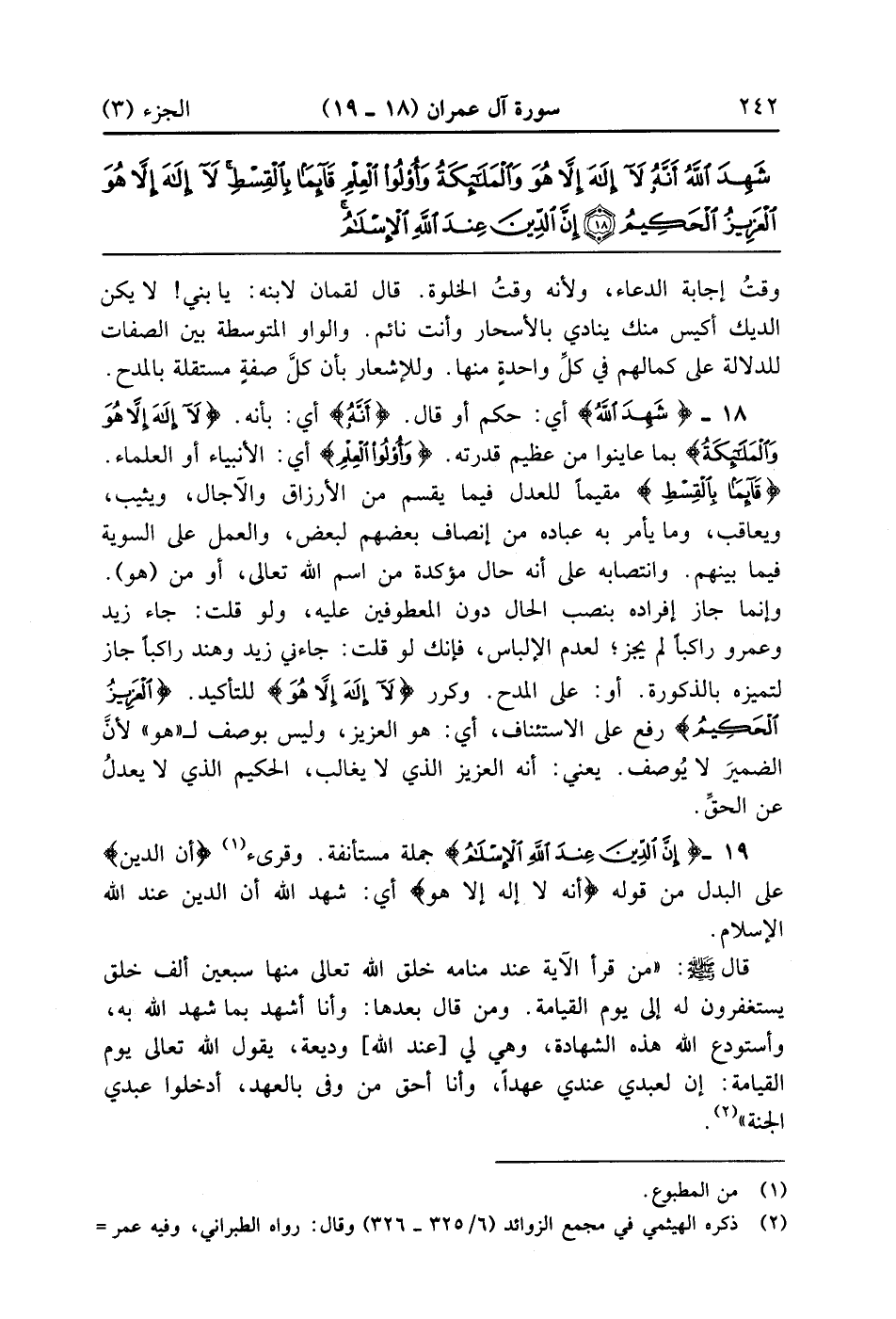 شَهِدَ اللَّهُ أَنَّهُ لَا إِلَهَ إِلَّا هُوَ وَالْمَلَائِكَةُ وَأُولُو الْعِلْمِ قَائِمًا بِالْقِسْطِ لَا إِلَهَ إِلَّا هُوَ الْعَزِيزُ الْحَكِيمُ (18)