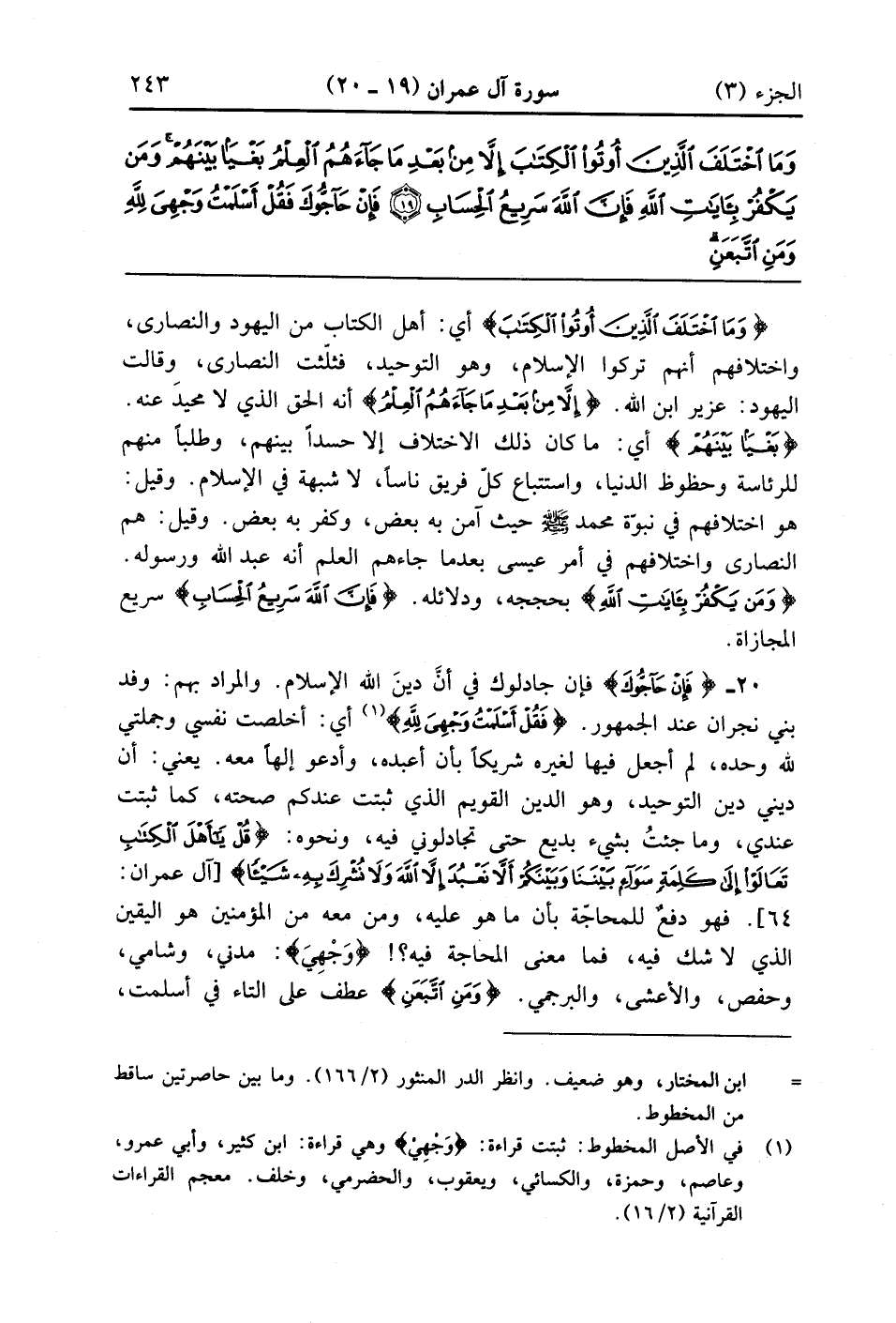 فَإِنْ حَاجُّوكَ فَقُلْ أَسْلَمْتُ وَجْهِيَ لِلَّهِ وَمَنِ اتَّبَعَنِ وَقُلْ لِلَّذِينَ أُوتُوا الْكِتَابَ وَالْأُمِّيِّينَ أَأَسْلَمْتُمْ فَإِنْ أَسْلَمُوا فَقَدِ اهْتَدَوْا وَإِنْ تَوَلَّوْا فَإِنَّمَا عَلَيْكَ الْبَلَاغُ وَاللَّهُ بَصِيرٌ بِالْعِبَادِ (20)