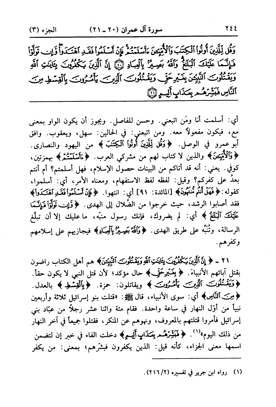 إِنَّ الَّذِينَ يَكْفُرُونَ بِآيَاتِ اللَّهِ وَيَقْتُلُونَ النَّبِيِّينَ بِغَيْرِ حَقٍّ وَيَقْتُلُونَ الَّذِينَ يَأْمُرُونَ بِالْقِسْطِ مِنَ النَّاسِ فَبَشِّرْهُمْ بِعَذَابٍ أَلِيمٍ (21)