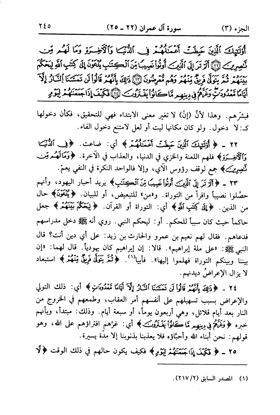 أَلَمْ تَرَ إِلَى الَّذِينَ أُوتُوا نَصِيبًا مِنَ الْكِتَابِ يُدْعَوْنَ إِلَى كِتَابِ اللَّهِ لِيَحْكُمَ بَيْنَهُمْ ثُمَّ يَتَوَلَّى فَرِيقٌ مِنْهُمْ وَهُمْ مُعْرِضُونَ (23)