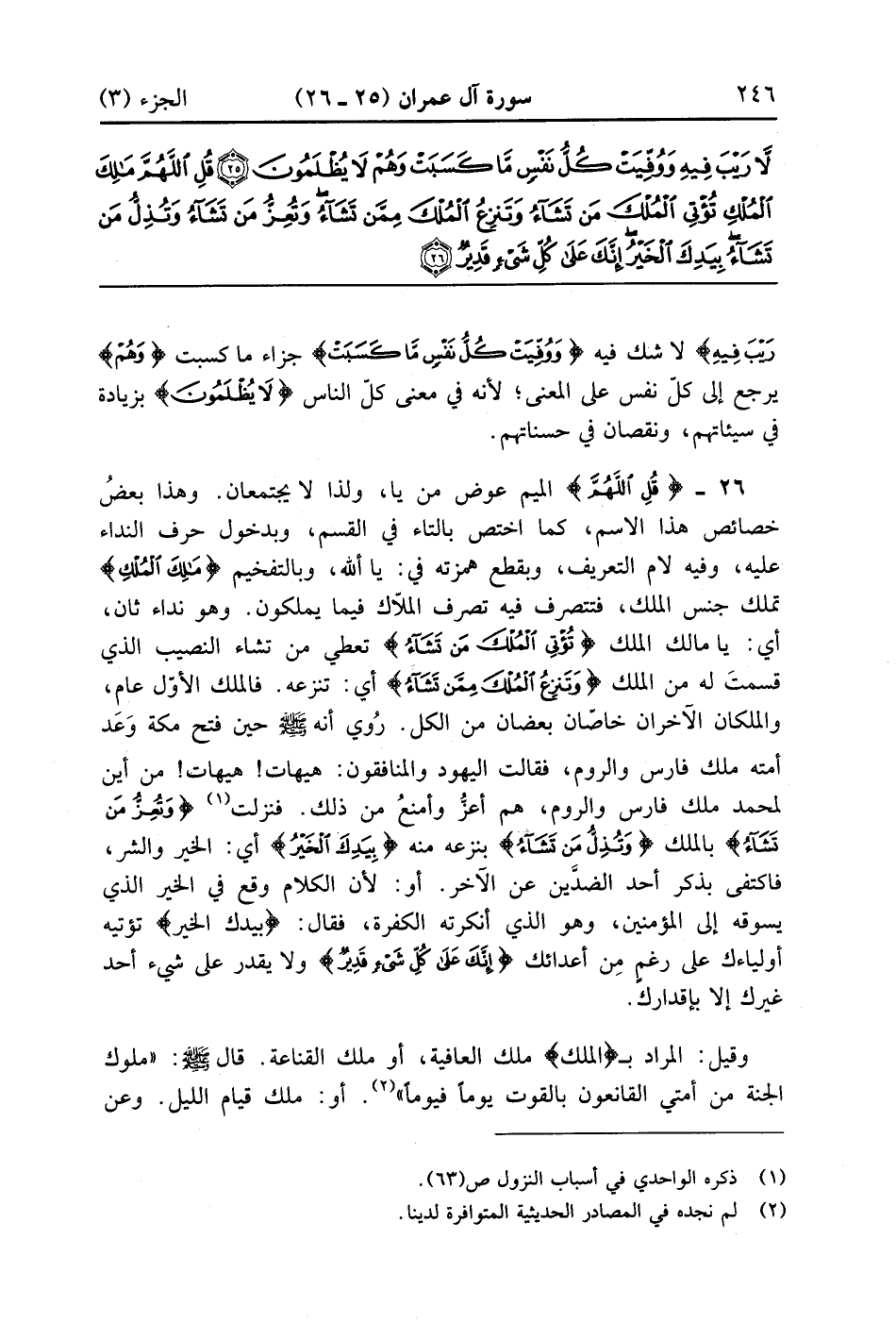 قُلِ اللَّهُمَّ مَالِكَ الْمُلْكِ تُؤْتِي الْمُلْكَ مَنْ تَشَاءُ وَتَنْزِعُ الْمُلْكَ مِمَّنْ تَشَاءُ وَتُعِزُّ مَنْ تَشَاءُ وَتُذِلُّ مَنْ تَشَاءُ بِيَدِكَ الْخَيْرُ إِنَّكَ عَلَى كُلِّ شَيْءٍ قَدِيرٌ (26)