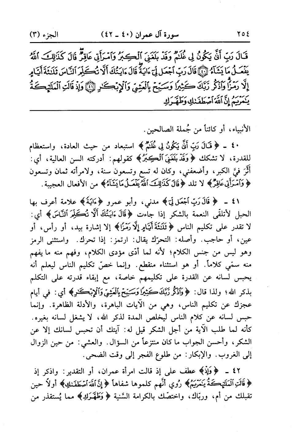 قَالَ رَبِّ اجْعَلْ لِي آيَةً قَالَ آيَتُكَ أَلَّا تُكَلِّمَ النَّاسَ ثَلَاثَةَ أَيَّامٍ إِلَّا رَمْزًا وَاذْكُرْ رَبَّكَ كَثِيرًا وَسَبِّحْ بِالْعَشِيِّ وَالْإِبْكَارِ (41)