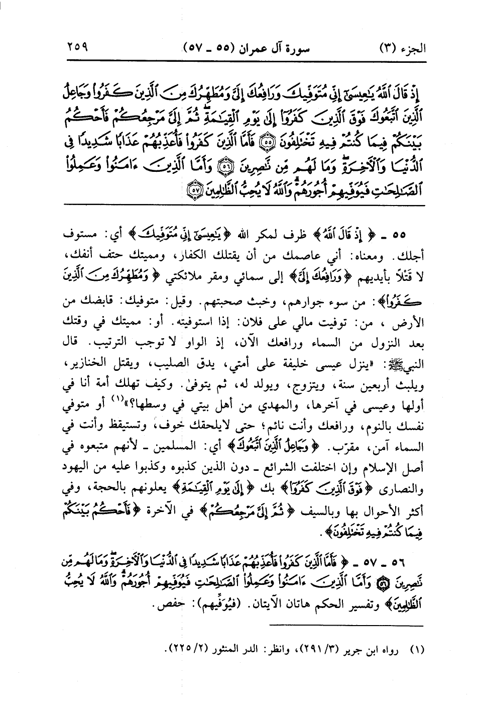إِذْ قَالَ اللَّهُ يَا عِيسَى إِنِّي مُتَوَفِّيكَ وَرَافِعُكَ إِلَيَّ وَمُطَهِّرُكَ مِنَ الَّذِينَ كَفَرُوا وَجَاعِلُ الَّذِينَ اتَّبَعُوكَ فَوْقَ الَّذِينَ كَفَرُوا إِلَى يَوْمِ الْقِيَامَةِ ثُمَّ إِلَيَّ مَرْجِعُكُمْ فَأَحْكُمُ بَيْنَكُمْ فِيمَا كُنْتُمْ فِيهِ تَخْتَلِفُونَ (55)