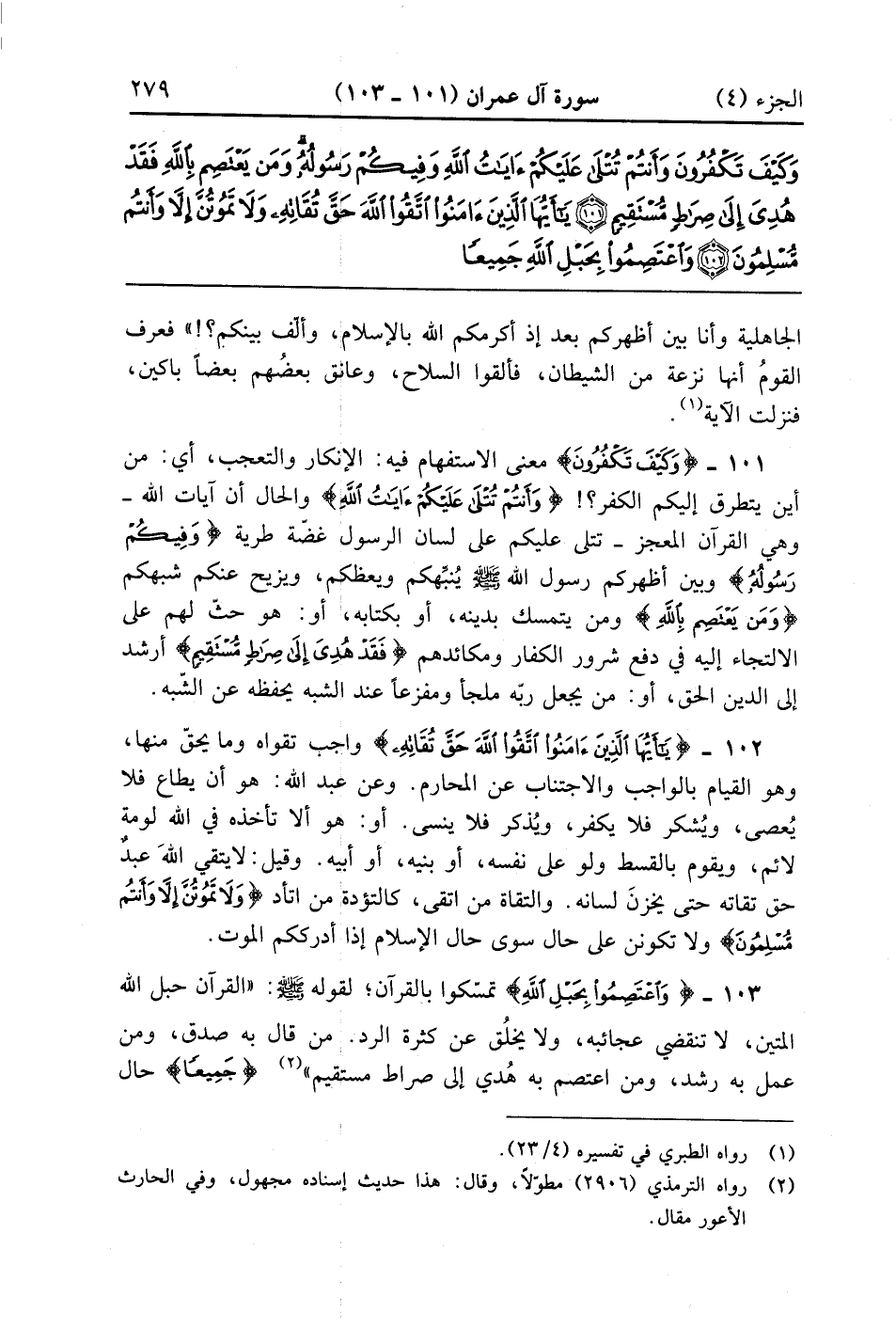 وَكَيْفَ تَكْفُرُونَ وَأَنْتُمْ تُتْلَى عَلَيْكُمْ آيَاتُ اللَّهِ وَفِيكُمْ رَسُولُهُ وَمَنْ يَعْتَصِمْ بِاللَّهِ فَقَدْ هُدِيَ إِلَى صِرَاطٍ مُسْتَقِيمٍ (101)
