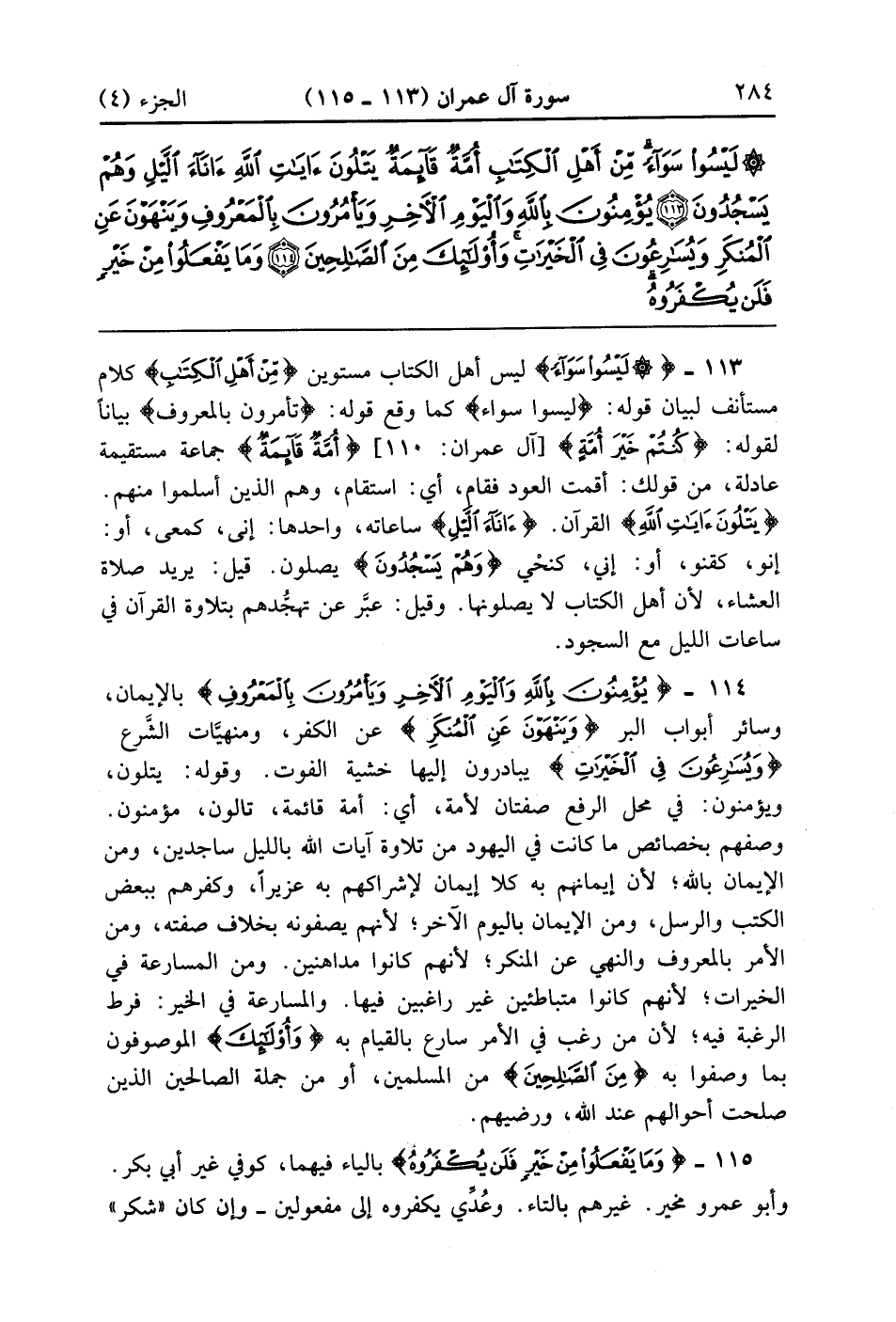يُؤْمِنُونَ بِاللَّهِ وَالْيَوْمِ الْآخِرِ وَيَأْمُرُونَ بِالْمَعْرُوفِ وَيَنْهَوْنَ عَنِ الْمُنْكَرِ وَيُسَارِعُونَ فِي الْخَيْرَاتِ وَأُولَئِكَ مِنَ الصَّالِحِينَ (114)