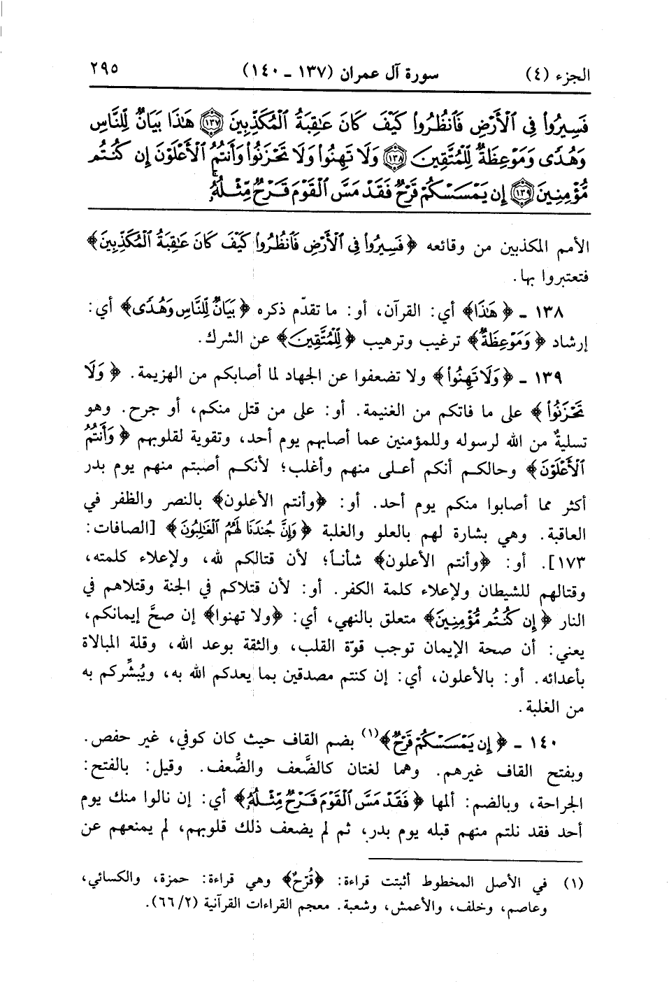 وَلَا تَهِنُوا وَلَا تَحْزَنُوا وَأَنْتُمُ الْأَعْلَوْنَ إِنْ كُنْتُمْ مُؤْمِنِينَ (139)