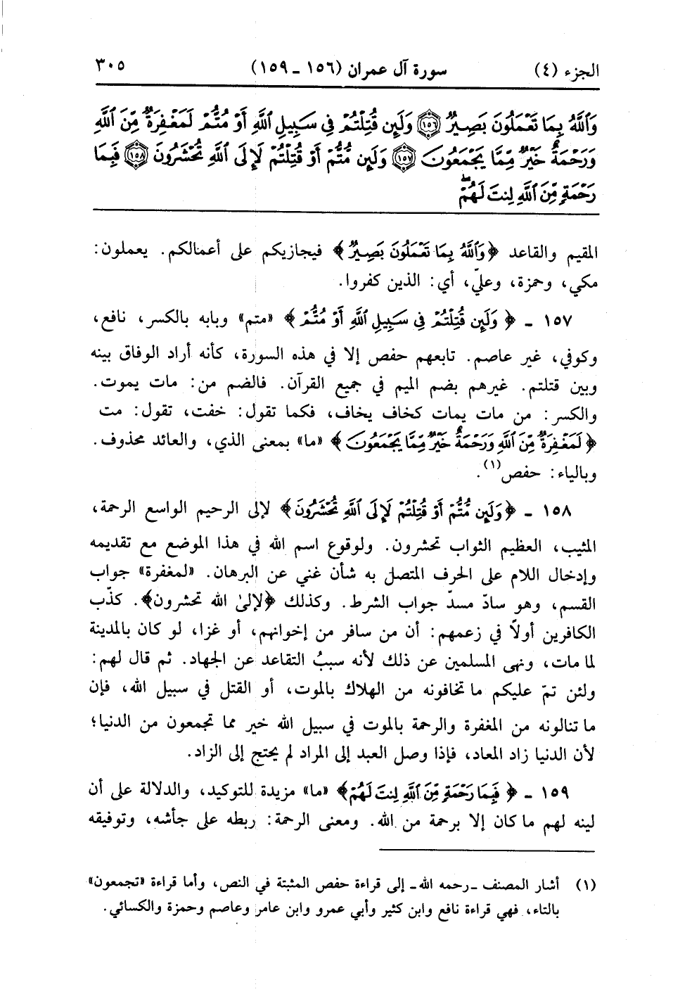 وَلَئِنْ قُتِلْتُمْ فِي سَبِيلِ اللَّهِ أَوْ مُتُّمْ لَمَغْفِرَةٌ مِنَ اللَّهِ وَرَحْمَةٌ خَيْرٌ مِمَّا يَجْمَعُونَ (157)