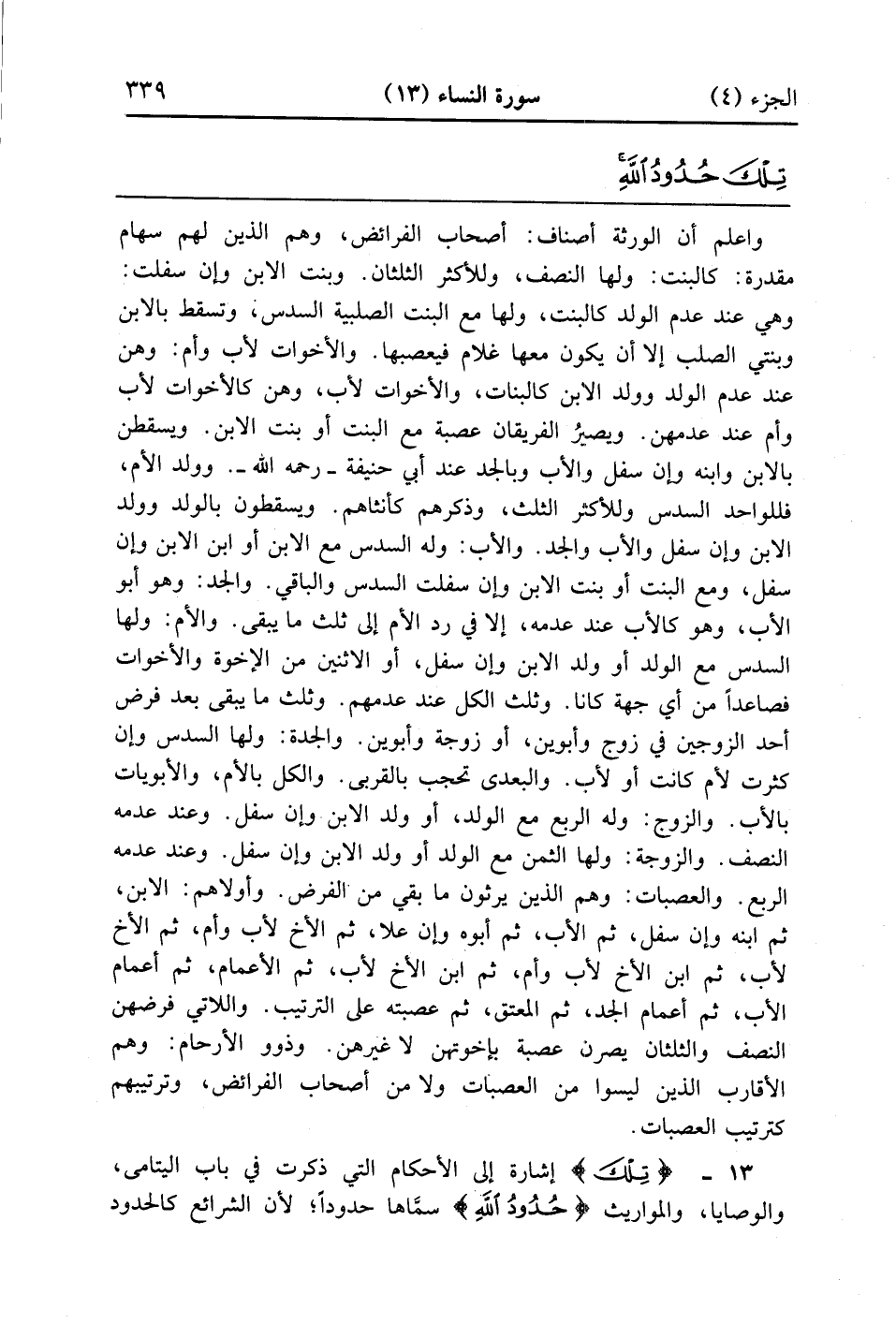 تِلْكَ حُدُودُ اللَّهِ وَمَنْ يُطِعِ اللَّهَ وَرَسُولَهُ يُدْخِلْهُ جَنَّاتٍ تَجْرِي مِنْ تَحْتِهَا الْأَنْهَارُ خَالِدِينَ فِيهَا وَذَلِكَ الْفَوْزُ الْعَظِيمُ (13)