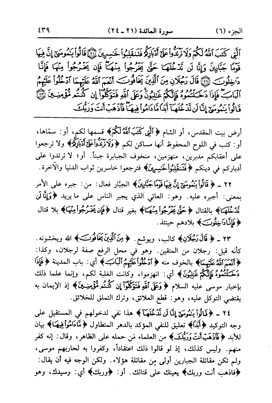 {قالوا يا موسى إِنَّ فِيهَا قَوْماً جَبَّارِينَ} الجبار فعال من جبره على الأمر بمعنى أجبره عليه وهو العاتي الذي يجبر الناس على ما يريد {وَإِنَّا لَن نَّدْخُلَهَا} بالقتال {حتى يَخْرُجُواْ مِنْهَا} بغير قتال {فَإِن يَخْرُجُواْ مِنْهَا} بلا قتال {فَإِنَّا داخلون} بلادهم حينئذ