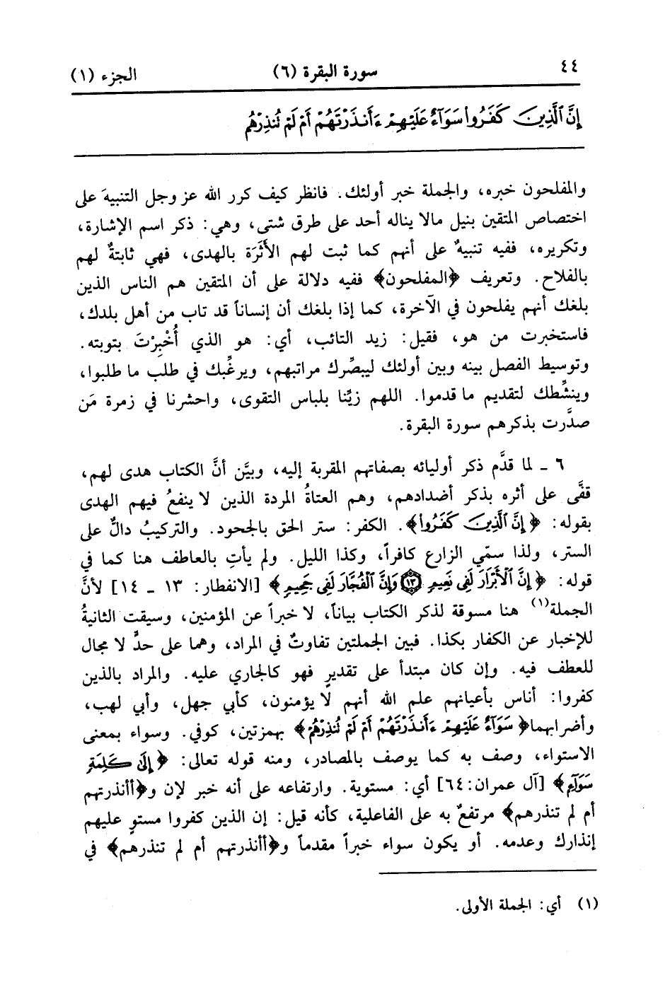 إِنَّ الَّذِينَ كَفَرُوا سَوَاءٌ عَلَيْهِمْ أَأَنْذَرْتَهُمْ أَمْ لَمْ تُنْذِرْهُمْ لَا يُؤْمِنُونَ (6)