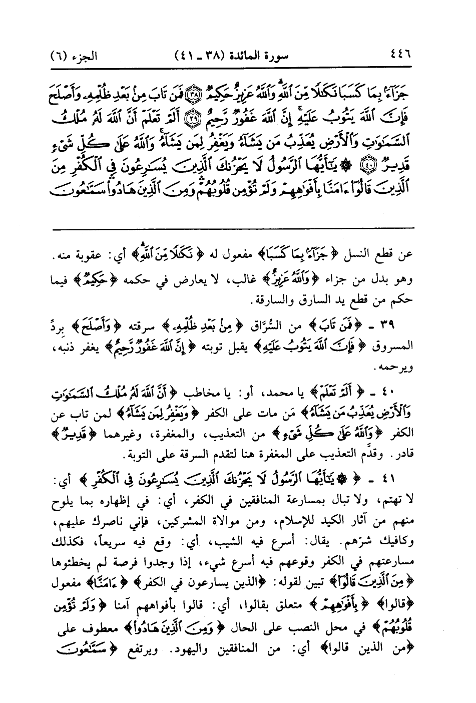 يَا أَيُّهَا الرَّسُولُ لَا يَحْزُنْكَ الَّذِينَ يُسَارِعُونَ فِي الْكُفْرِ مِنَ الَّذِينَ قَالُوا آمَنَّا بِأَفْوَاهِهِمْ وَلَمْ تُؤْمِنْ قُلُوبُهُمْ وَمِنَ الَّذِينَ هَادُوا سَمَّاعُونَ لِلْكَذِبِ سَمَّاعُونَ لِقَوْمٍ آخَرِينَ لَمْ يَأْتُوكَ يُحَرِّفُونَ الْكَلِمَ مِنْ بَعْدِ مَوَاضِعِهِ يَقُولُونَ إِنْ أُوتِيتُمْ هَذَا فَخُذُوهُ وَإِنْ لَمْ تُؤْتَوْهُ فَاحْذَرُوا وَمَنْ يُرِدِ اللَّهُ فِتْنَتَهُ فَلَنْ تَمْلِكَ لَهُ مِنَ اللَّهِ شَيْئًا أُولَئِكَ الَّذِينَ لَمْ يُرِدِ اللَّهُ أَنْ يُطَهِّرَ قُلُوبَهُمْ لَهُمْ فِي الدُّنْيَا خِزْيٌ وَلَهُمْ فِي الْآخِرَةِ عَذَابٌ عَظِيمٌ (41)