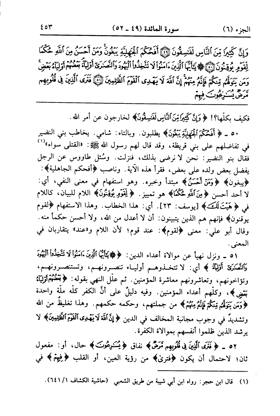 يَا أَيُّهَا الَّذِينَ آمَنُوا لَا تَتَّخِذُوا الْيَهُودَ وَالنَّصَارَى أَوْلِيَاءَ بَعْضُهُمْ أَوْلِيَاءُ بَعْضٍ وَمَنْ يَتَوَلَّهُمْ مِنْكُمْ فَإِنَّهُ مِنْهُمْ إِنَّ اللَّهَ لَا يَهْدِي الْقَوْمَ الظَّالِمِينَ (51)