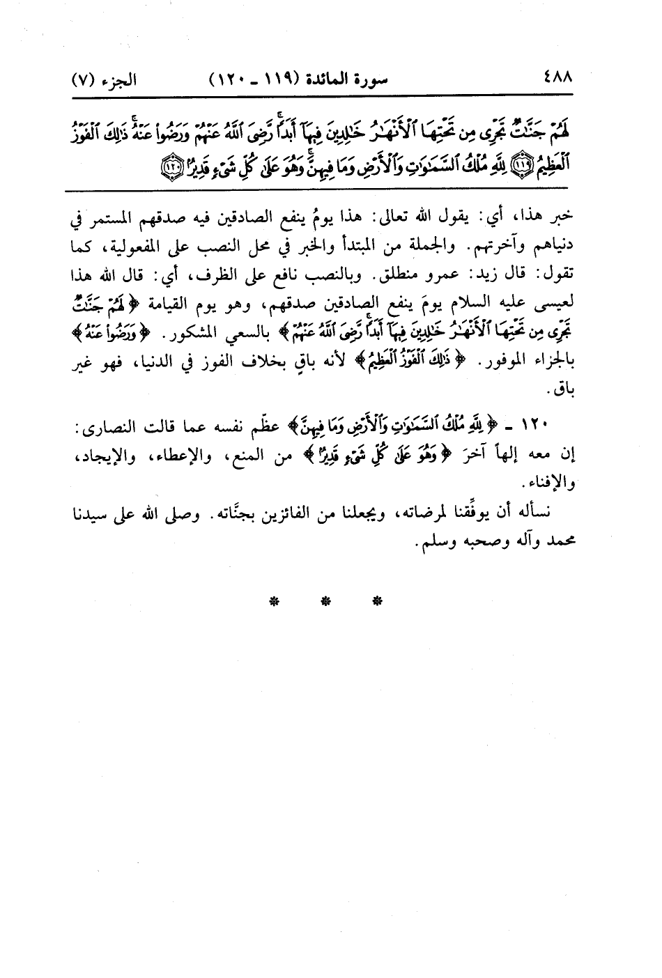 لِلَّهِ مُلْكُ السَّمَاوَاتِ وَالْأَرْضِ وَمَا فِيهِنَّ وَهُوَ عَلَى كُلِّ شَيْءٍ قَدِيرٌ (120)
