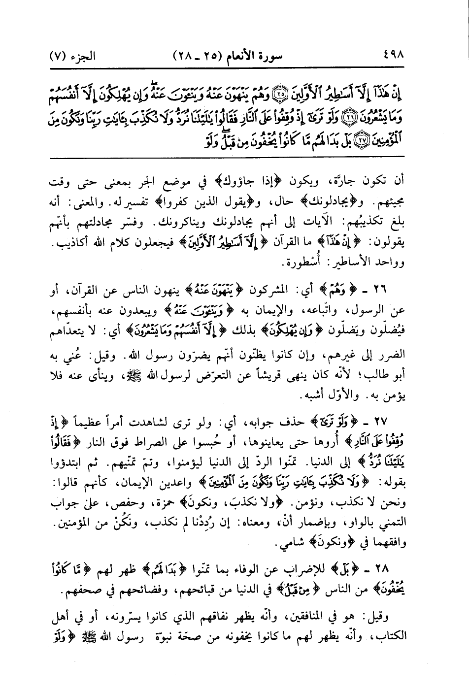 وَلَوْ تَرَى إِذْ وُقِفُوا عَلَى النَّارِ فَقَالُوا يَا لَيْتَنَا نُرَدُّ وَلَا نُكَذِّبَ بِآيَاتِ رَبِّنَا وَنَكُونَ مِنَ الْمُؤْمِنِينَ (27)