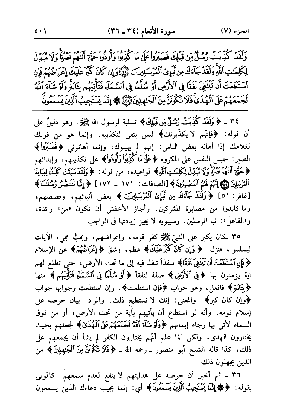 وَلَقَدْ كُذِّبَتْ رُسُلٌ مِنْ قَبْلِكَ فَصَبَرُوا عَلَى مَا كُذِّبُوا وَأُوذُوا حَتَّى أَتَاهُمْ نَصْرُنَا وَلَا مُبَدِّلَ لِكَلِمَاتِ اللَّهِ وَلَقَدْ جَاءَكَ مِنْ نَبَإِ الْمُرْسَلِينَ (34)