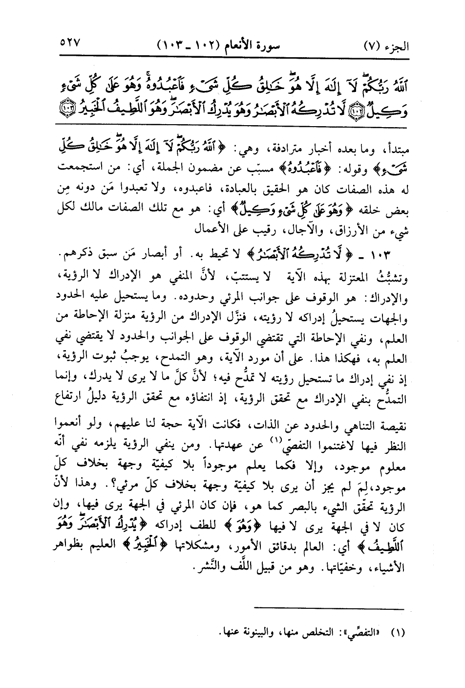 لَا تُدْرِكُهُ الْأَبْصَارُ وَهُوَ يُدْرِكُ الْأَبْصَارَ وَهُوَ اللَّطِيفُ الْخَبِيرُ (103)