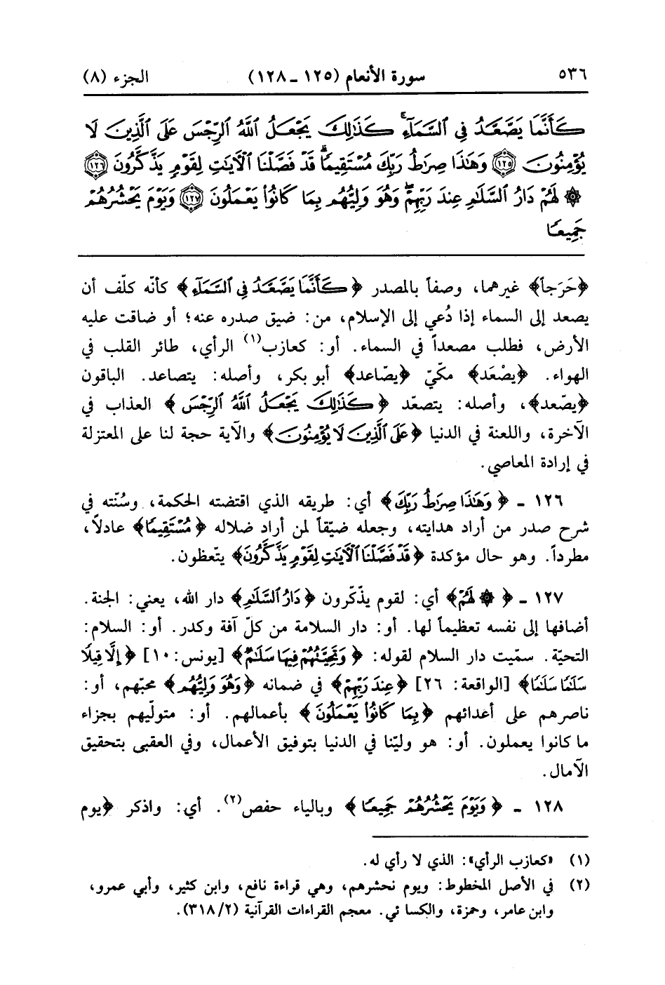 وَهَذَا صِرَاطُ رَبِّكَ مُسْتَقِيمًا قَدْ فَصَّلْنَا الْآيَاتِ لِقَوْمٍ يَذَّكَّرُونَ (126)