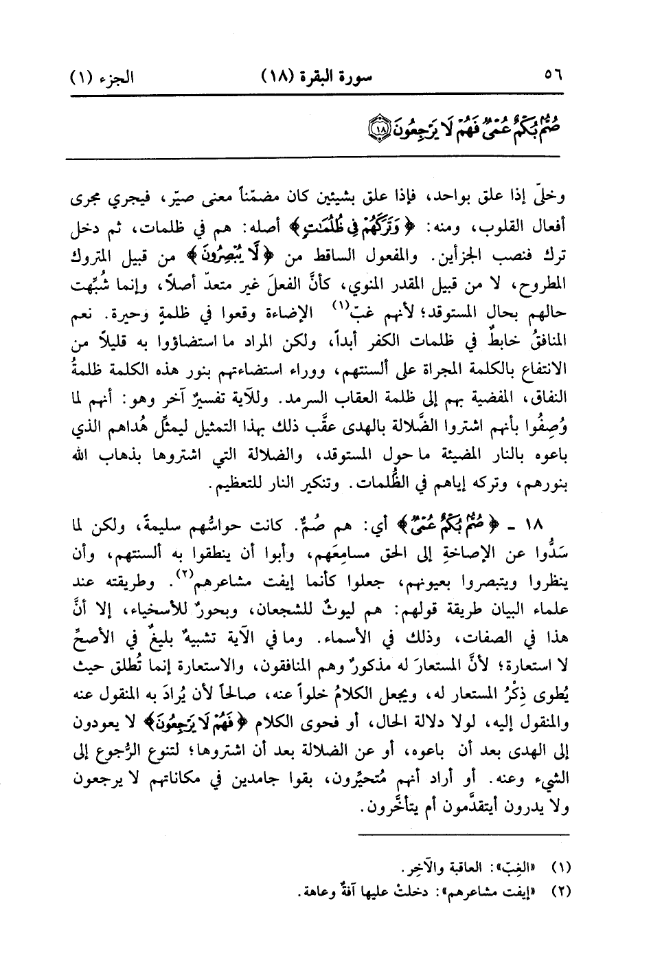 صُمٌّ بُكْمٌ عُمْيٌ فَهُمْ لَا يَرْجِعُونَ (18)