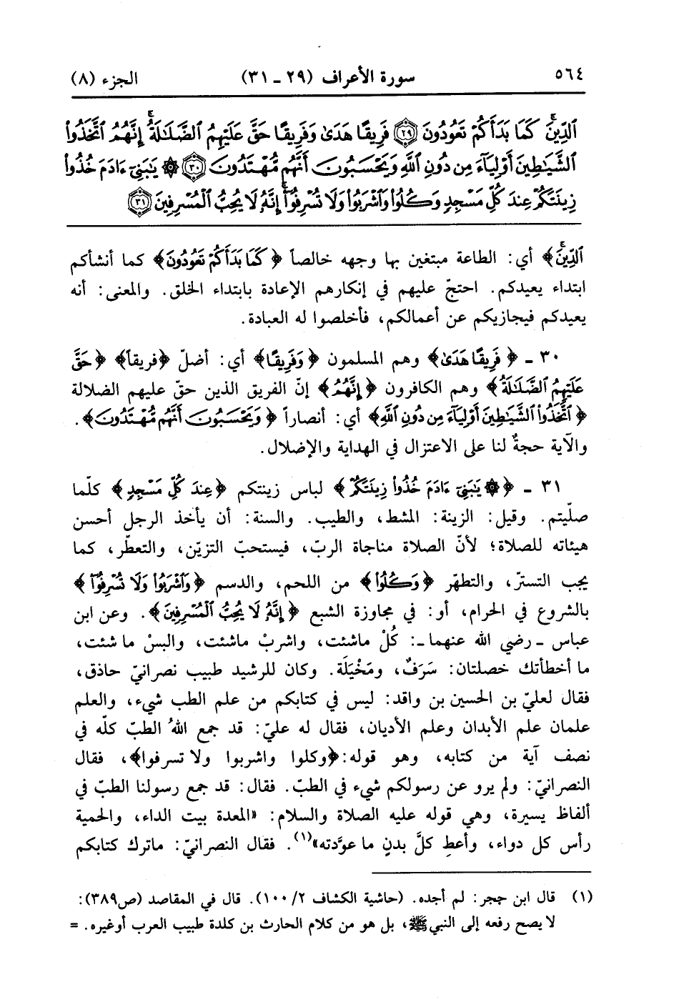 يَا بَنِي آدَمَ خُذُوا زِينَتَكُمْ عِنْدَ كُلِّ مَسْجِدٍ وَكُلُوا وَاشْرَبُوا وَلَا تُسْرِفُوا إِنَّهُ لَا يُحِبُّ الْمُسْرِفِينَ (31)