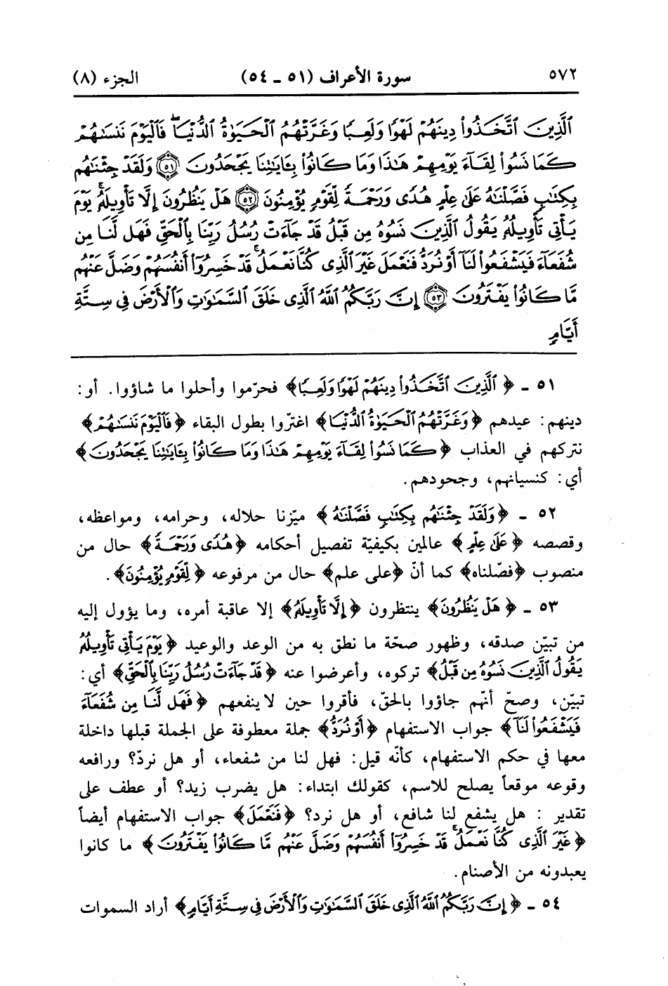 وَلَقَدْ جِئْنَاهُمْ بِكِتَابٍ فَصَّلْنَاهُ عَلَى عِلْمٍ هُدًى وَرَحْمَةً لِقَوْمٍ يُؤْمِنُونَ (52)