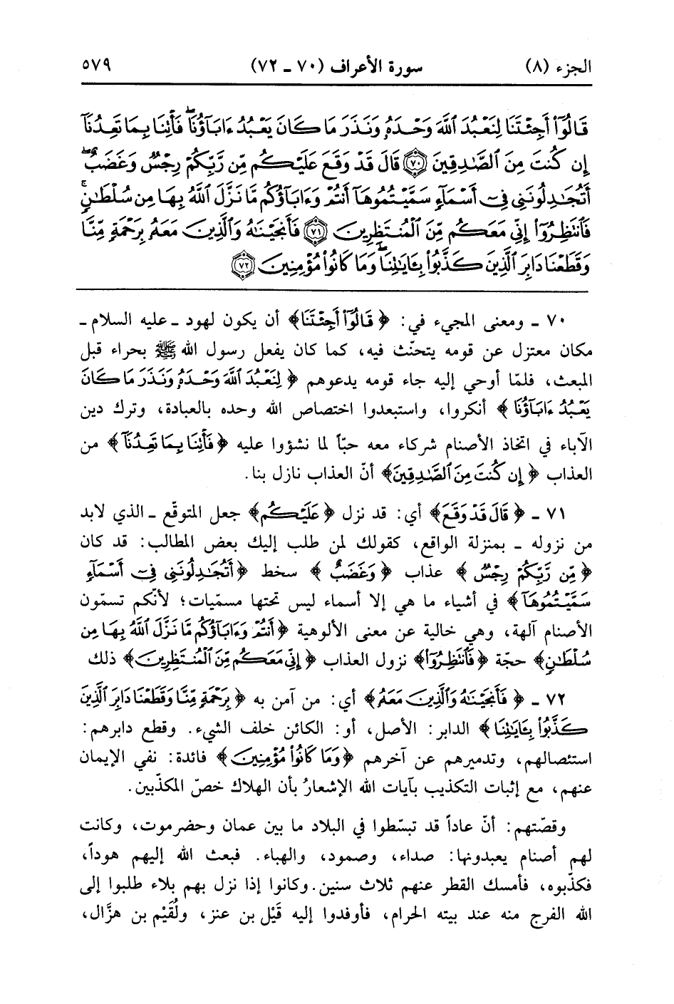 قَالَ قَدْ وَقَعَ عَلَيْكُمْ مِنْ رَبِّكُمْ رِجْسٌ وَغَضَبٌ أَتُجَادِلُونَنِي فِي أَسْمَاءٍ سَمَّيْتُمُوهَا أَنْتُمْ وَآبَاؤُكُمْ مَا نَزَّلَ اللَّهُ بِهَا مِنْ سُلْطَانٍ فَانْتَظِرُوا إِنِّي مَعَكُمْ مِنَ الْمُنْتَظِرِينَ (71)