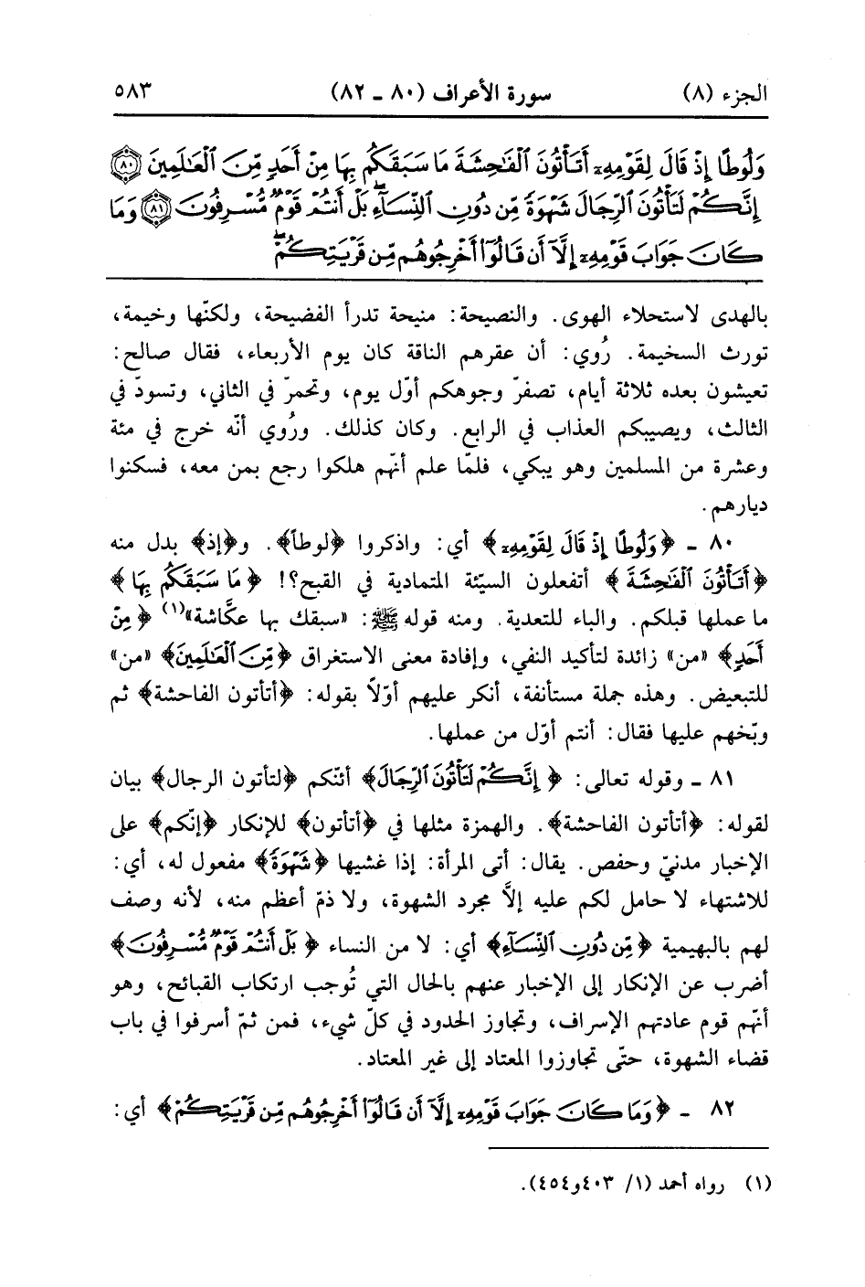 إِنَّكُمْ لَتَأْتُونَ الرِّجَالَ شَهْوَةً مِنْ دُونِ النِّسَاءِ بَلْ أَنْتُمْ قَوْمٌ مُسْرِفُونَ (81)