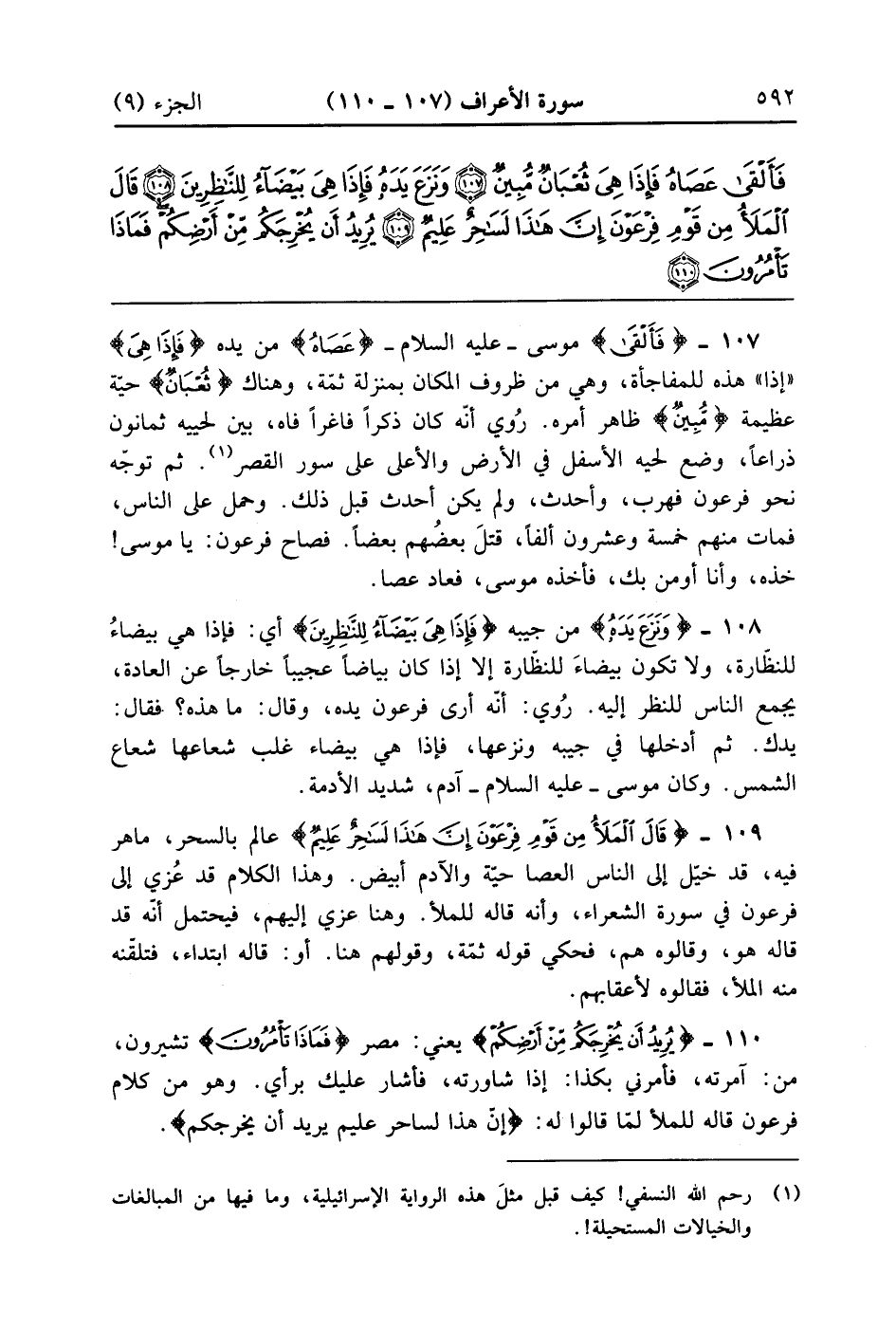 الأعراف 103 110 غلب شعاها شعاع الشمس وكان موسى عليه السلام آدم شديد الأدمة